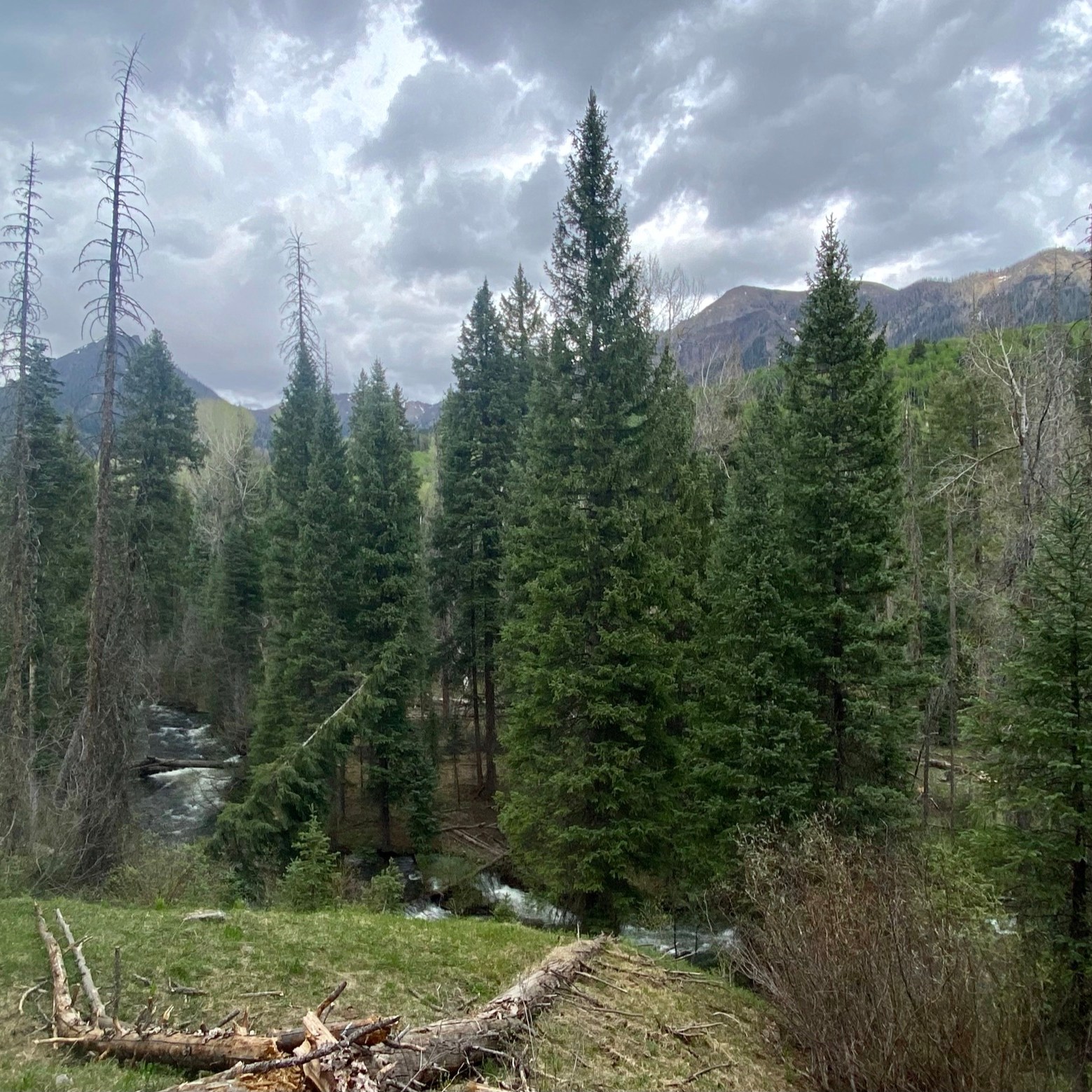 The hike weaves its way next to private property before opening up and running along Turkey Creek. The water was moving swiftly as Labor Day weekend is still before the dry summer season hits the area. There are lots of spots to stop and picnic or even camp along the river within the first 3 miles of the trail after leaving the surrounding private property. For hikers, the trail turns into a single path after the 3 mile marker and the restriction of motorized vehicles. We made it another 1.25 miles when the bad weather opened up on us. However, the views and open meadows that we passed were beautiful and worthy of pictures.