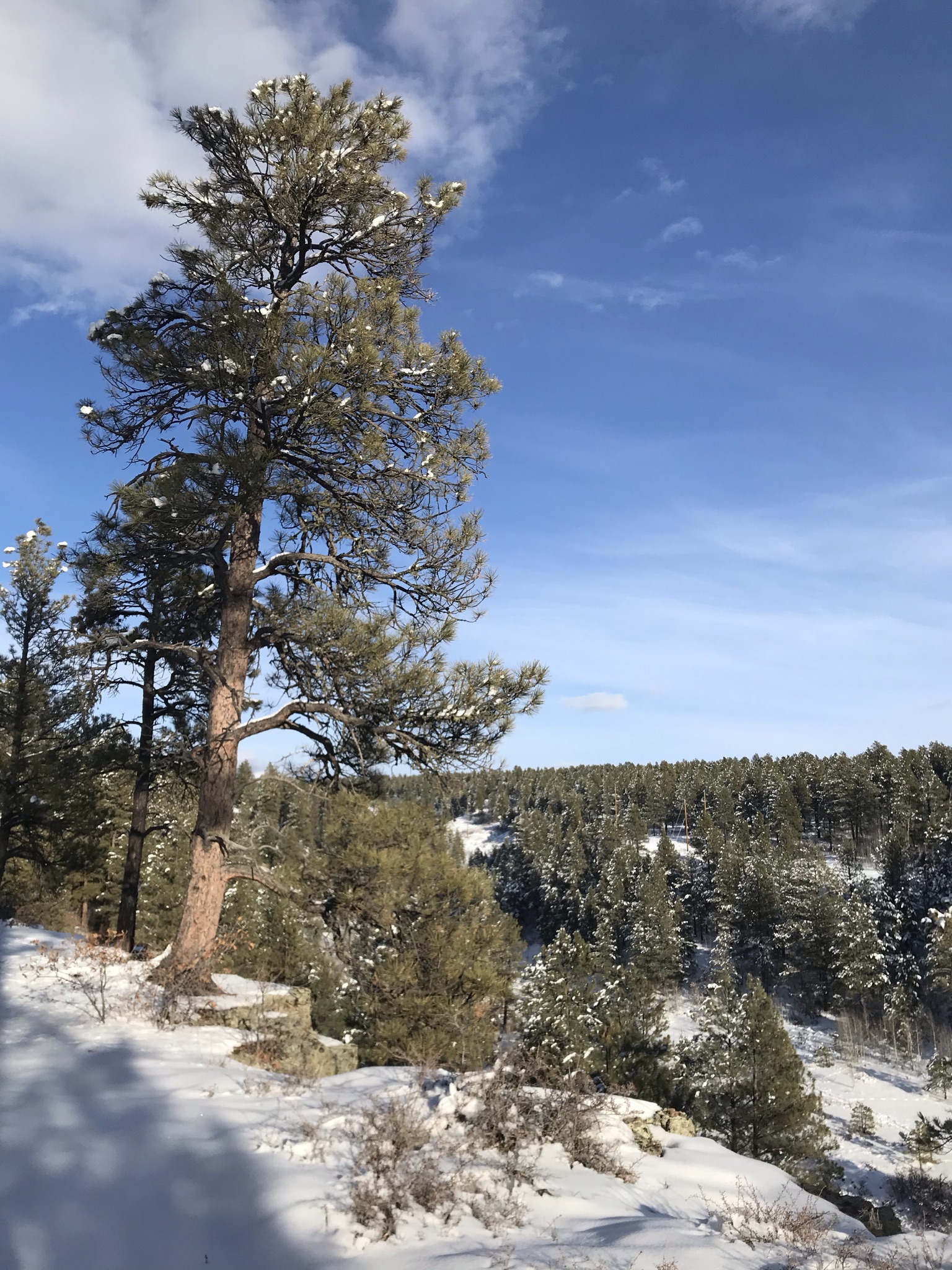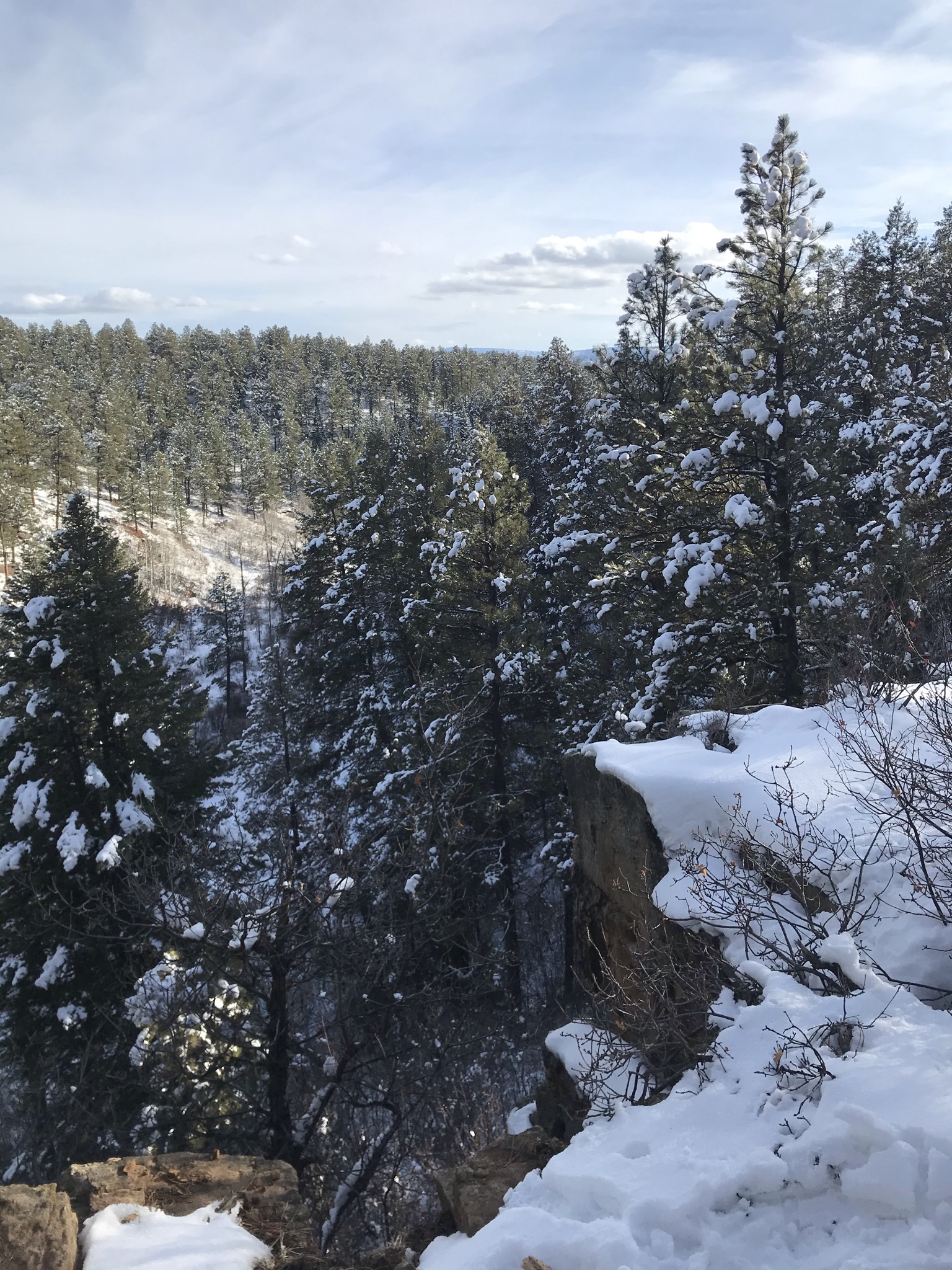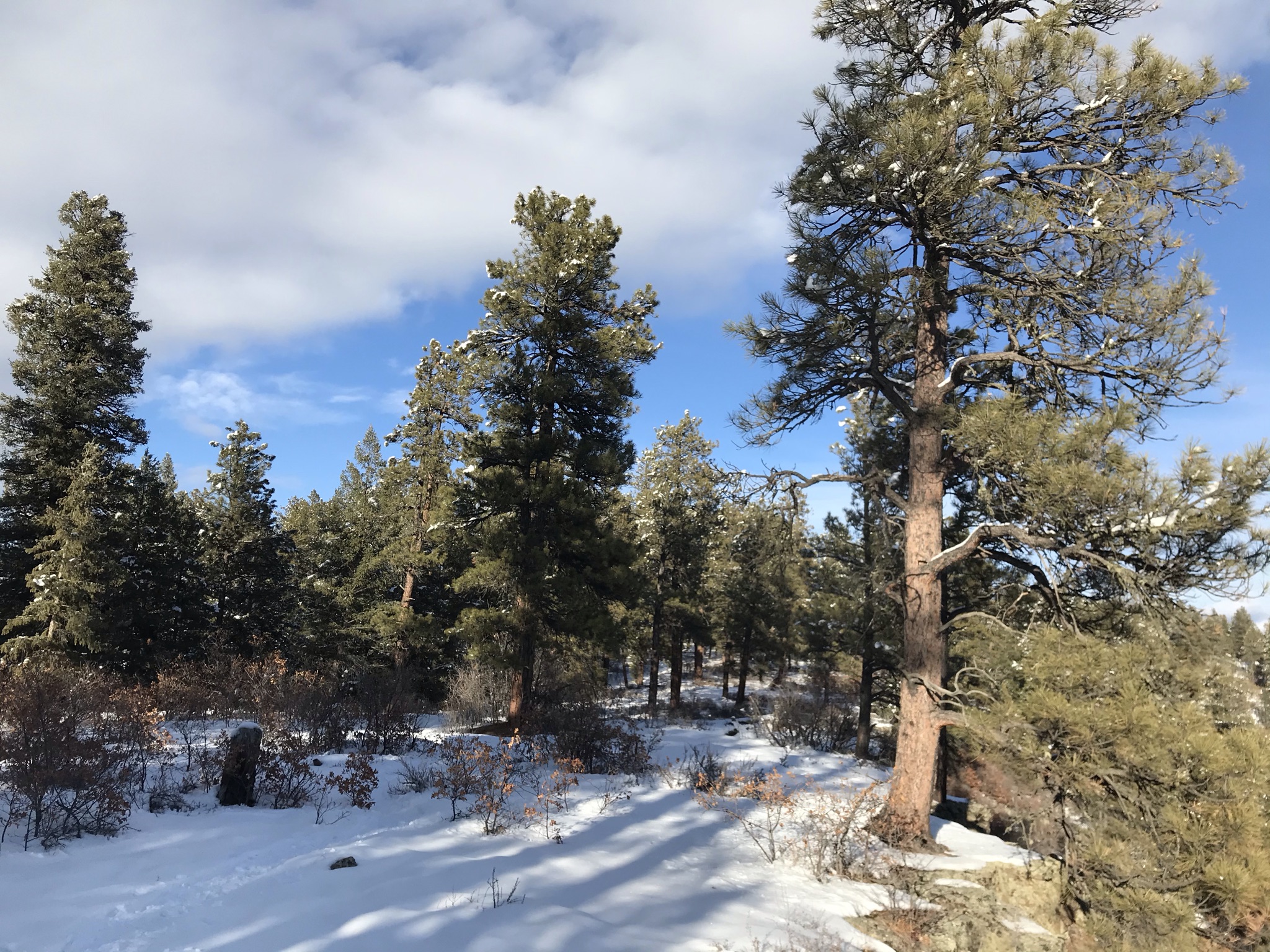 The trail begins at the Gate 5 forest service entrance off of North Pagosa Blvd., approximately 3.5 miles north of Highway 160. Following the trail clockwise, it initially heads south along the upper rim of Martinez Canyon. The trail wanders along the rim providing views of across Martinez Canyon and of Martinez Creek below. The Powerline trail, which winds along Martinez Creek and through Martinez Canyon, can be seen below.